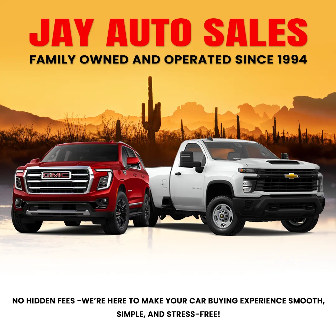 I give consent for Jay Auto Sales to collect my contact details and to text or email me regarding this request, as well as for future company updates, appointment reminders, and customer service communications. Message frequency may vary. Message and data rates may apply. Text STOP to opt out at any timeĀ .